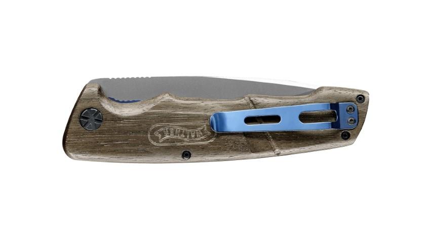 Nož Walther BWK – Blue Wood Knife je nož z močnim praktičnim rezilom z vsestransko konico. Odlikuje se po ročaju iz oreha, modrim svetlikajočim se linijam ter rezilu iz tatiniziranega jekla. Idealen za vsakodnevno uporabo in aktivnosti na prostem. V kompletu je priložen usnjen etui.