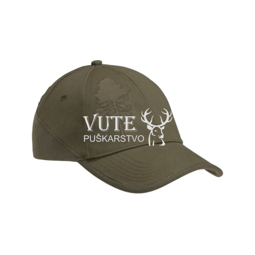 Zelena kapa s šiltom z majhnim izvezenim logom na sprednji strani.