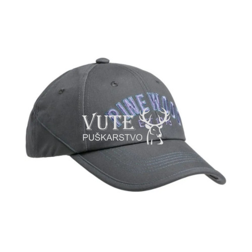 Ženska kapa s šiltom lične sive barve. Kapa je univerzalne velikosti, na sprednji strani ima izvezen logo Pinewood v modri barvi.