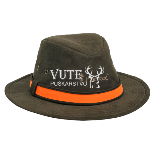 Klobuk Pinewood Hunting Hat je praktični vodoodbojni klobuk, ki vas ščiti pred soncem ali padavinami. Klobuk je v temno rjavi barvi z dekorativnim in fukncijskim trakom, ki se po potrebi obrne. Na drugi strani je signalne barve, zato je primeren za skupinske pogone. saj boste zaradi traku dobro vidni.