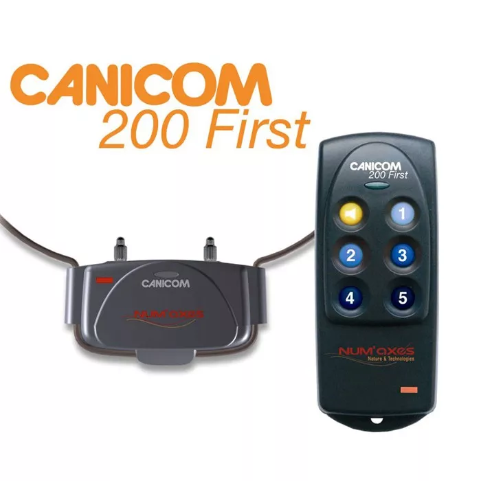 Električna ovratnica za psa Num Axes Canicom 200 je kakovostna naprava in se uvršča se med najboljše ovratnice za treniranje in učenje psa na trgu. Ovratnice za treniranje so pripomoček, ki vam pomagajo naučiti psa hoditi brez povodca, zagotoviti zanesljiv odpoklic v vseh okoliščinah, ustaviti psa, da ne pobegne, da ne vleče za povodec ter za prekinitev nezaželenih pasjih aktivnosti – odvajanje slabih navad v vsakodnevni interakciji z ljudmi in drugimi psi. Canicom 200 First je električna vadbena ovratnica, ki ima zelo majhen in lahek oddajnik brez zunanje antene. Je izjemno praktična in majhna, saj se enostavno pospravi v majhen žep in ima ergonomsko obliko. Njen doseg je 200 metrov, kar pomeni, da je bolj primerna za notranjo uporabo, manjše posesti in osnovno učenje psa.