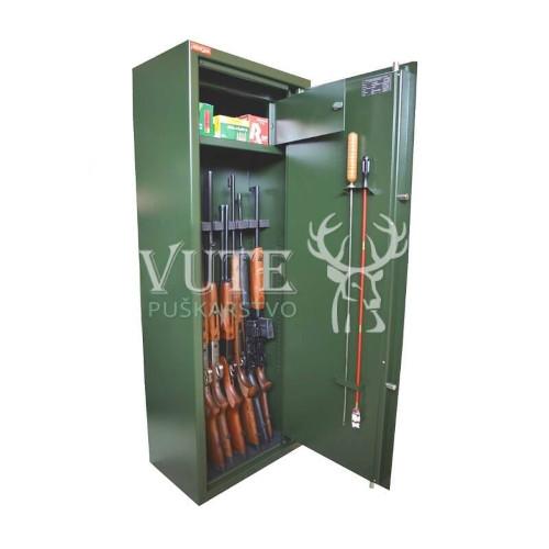Omara za orožje Novcan G-3/6-350 v kateri je prostora za 6 kosov orožja. Ima tudi poseben, ločen prostor za strelivo, tako da lahko po predpisih shranjujete vse v eni omari. Na vratcih je priročno držalo za čistilni pribor. Omara in prostor za strelivo se zaklepata z različnima ključema. Da bo vaše orožje res na varnem, so stene omare iz 3 mm debele jeklene pločevine.