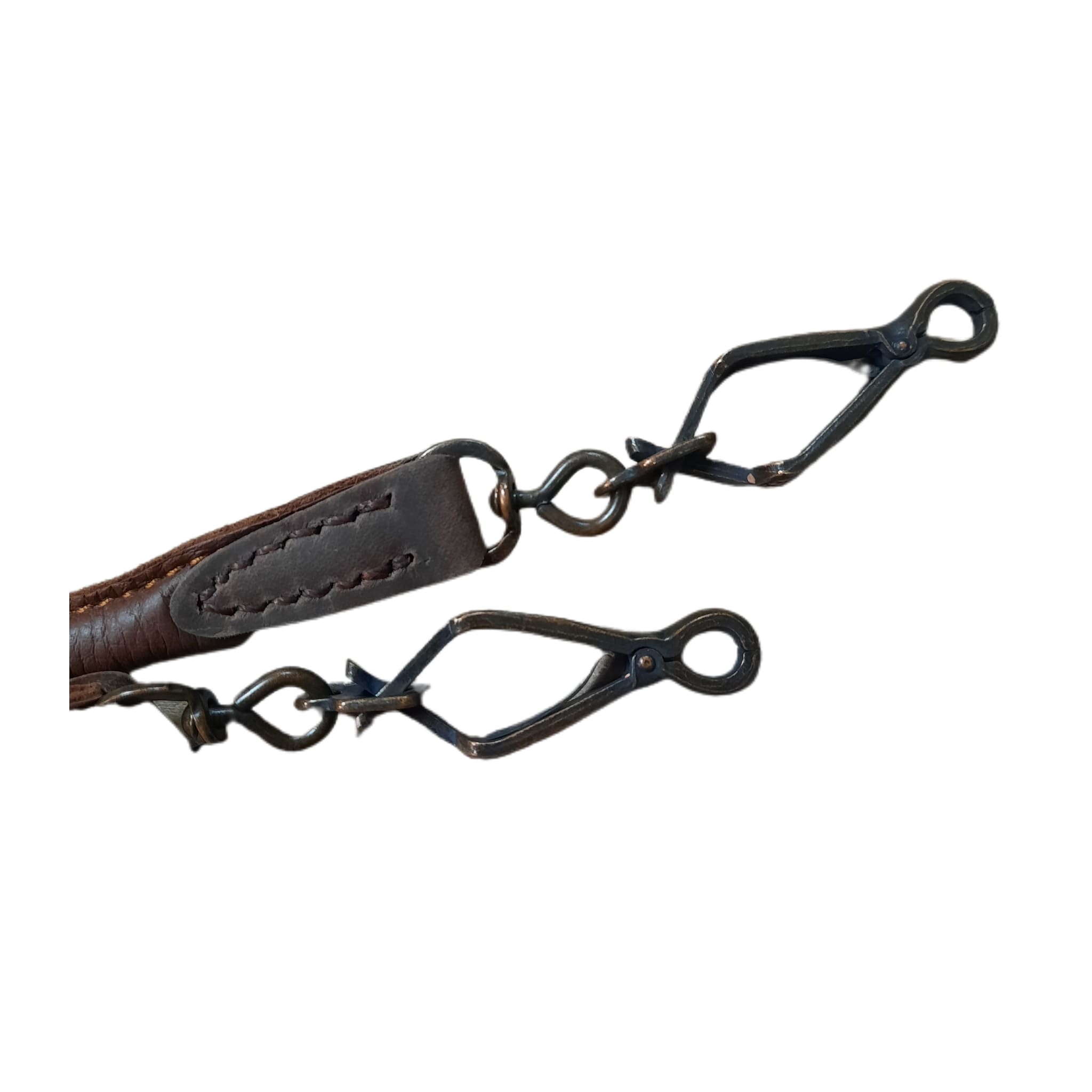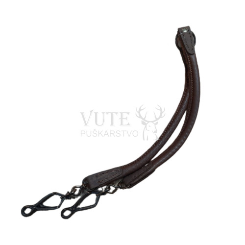 Usnjen povodec za psa z zaponko na obeh straneh. Lahko ga pripnete za pas za brezročno vodenje psa. Povodec je iz mehkejšega usnja, ki je varen za vašega psa.